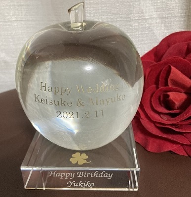 | ガラスリンゴ名入れ ガラスリンゴも名入れできます |