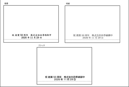 ご希望の書体をお選びください。2種類まで原稿を作成いたします。 【記入例】書体1と書体5で比べたい など |